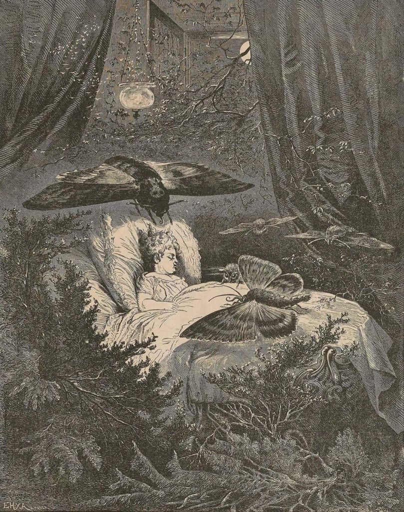 Black trees bent to the ground, their blossoms made such a sound